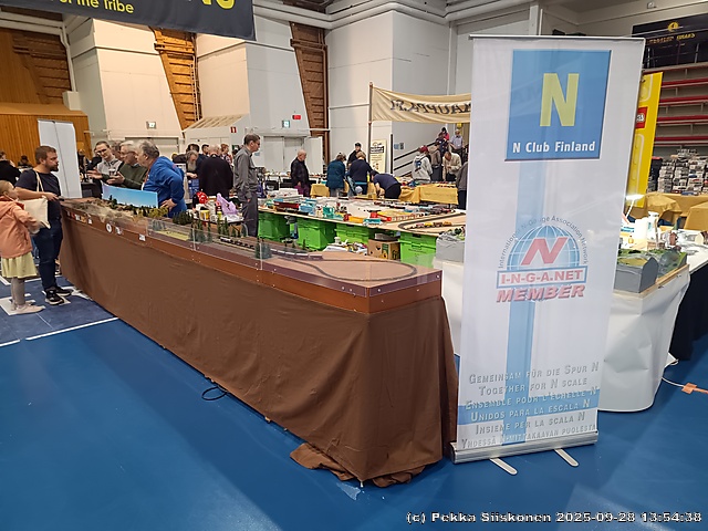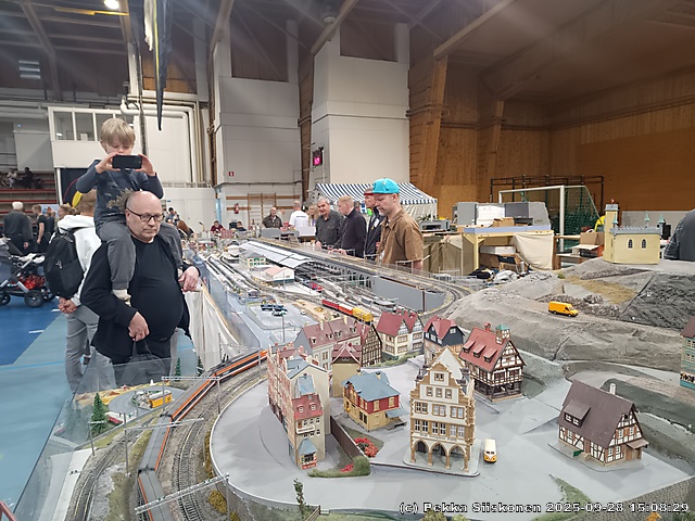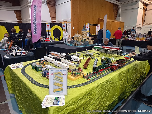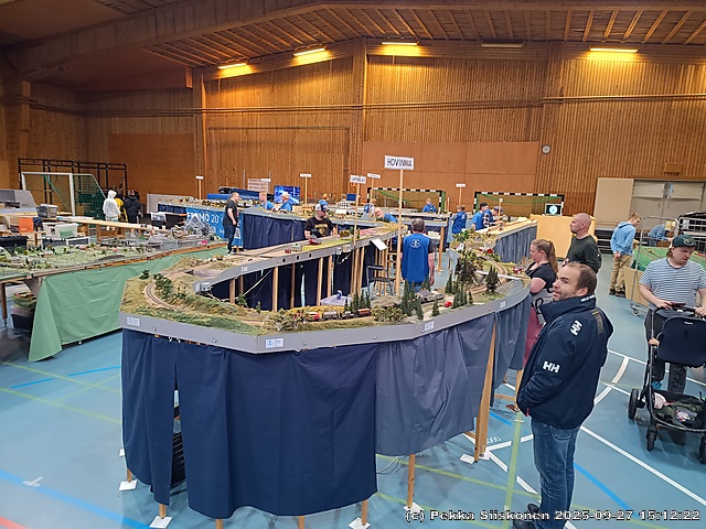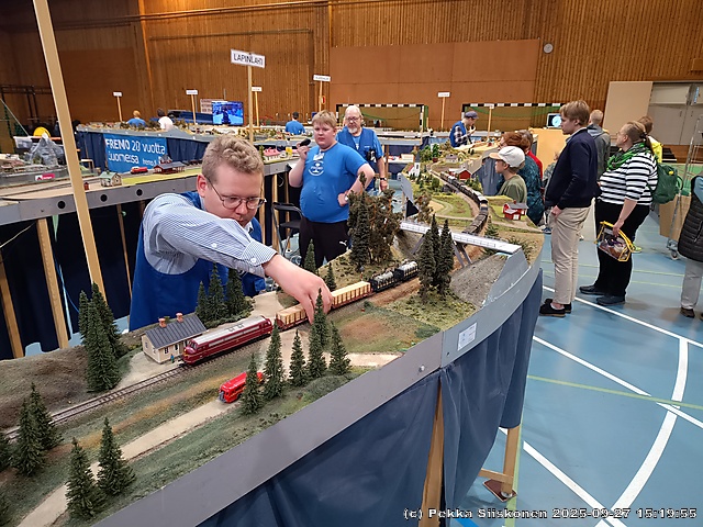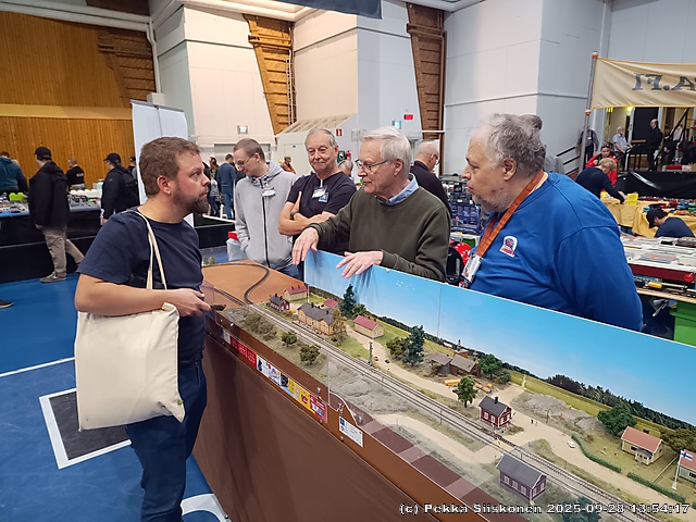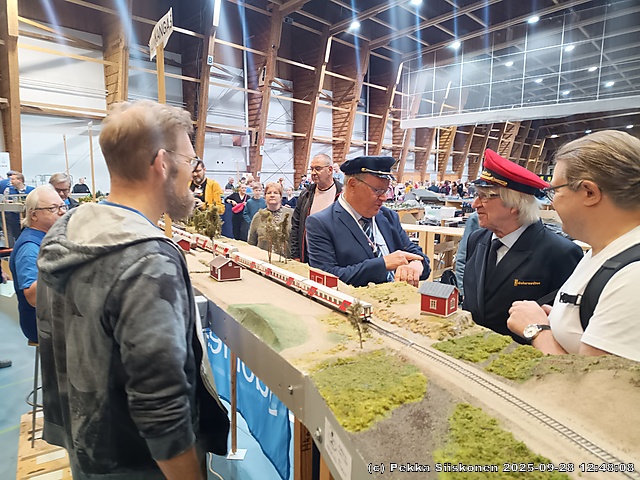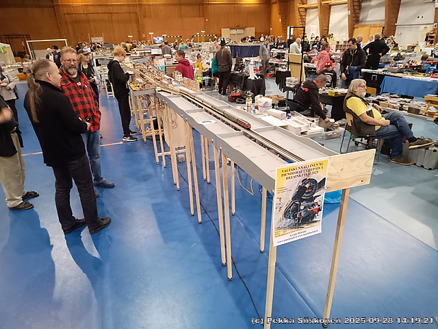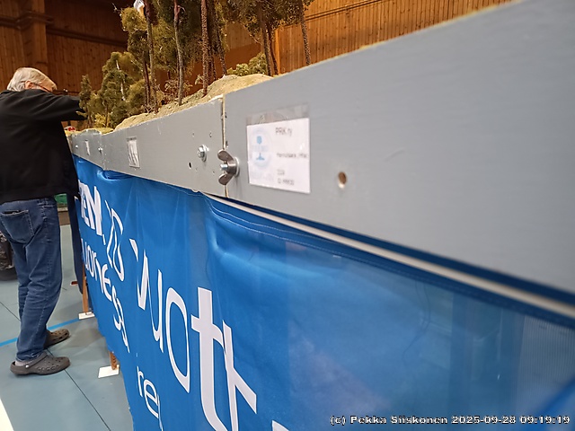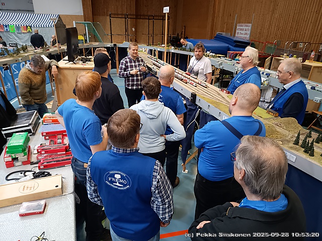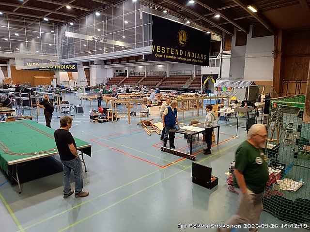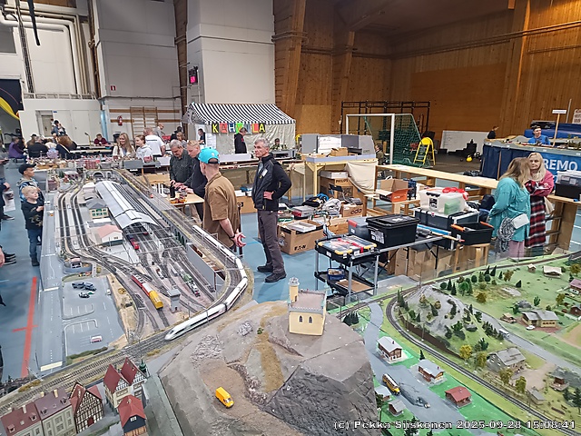 IMG_20250928_165232662_HDR.jpg Kello on 16:52. Näyttely sulkeutui klo 16. Kun kaikki liikkuva kalusto oli pois radalta, olivat kaikki työn touhussa, jotta Oulun moduulit saatiin pikaisesti irti radasta ja pakattua valmiiksi pitkälle kotimatkalle.
