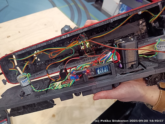 IMG_20250928_141056571.jpg Veturin sisuskaluja. Elektroniikka on pääosin valmiista komponenteista koottua, ja tavoitteena on, että jokapoika voisi ohjeistettuna rakentaa samanlaisen.