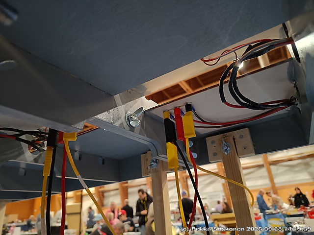 IMG_20250928_141938245_HDR.jpg SMM käyttää moduuleissa vain runkovastakkeita, ja sauman yli mennään mittajohdoilla. Näin ei moduulista roiku johtoja kuljetuksen aikana. 3-kiskojärjestelmä sallii esikuvanmukaiset raidevirtapiirit junien havaitsemiseksi.