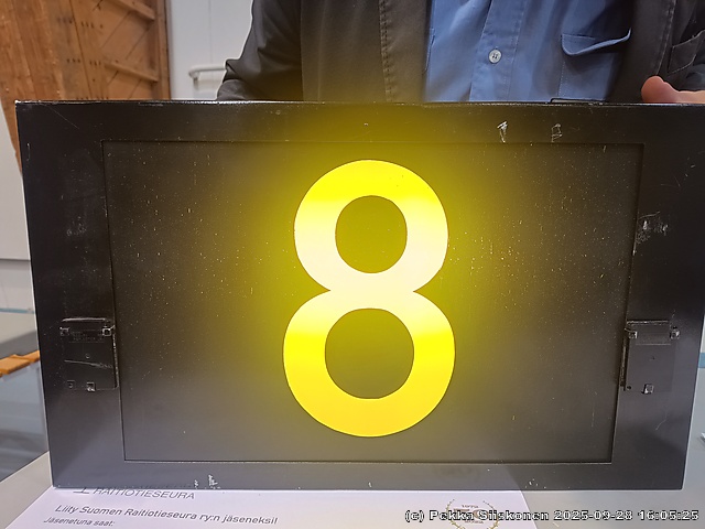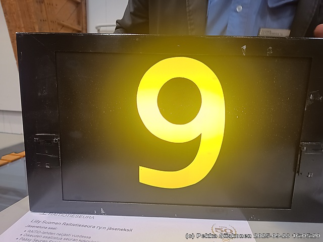 IMG_20250928_160519767_HDR.jpg Suomen Raitiotieseuran osastolla oli vanha rullakilpi, jonka numeroissa oli vanha HKL-fontti.